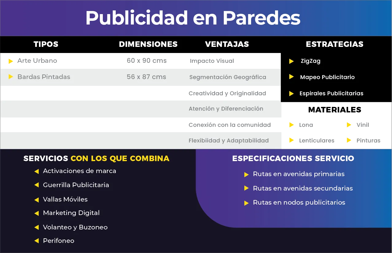 - Precios y cotizaciones para publicidad en muros.